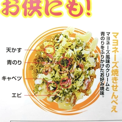 「下町のお好み焼きせんべい」は、大阪の名物お好み焼きを再現したせんべいです。フリーズドライ技術を使って、サクサクとした食感が楽しめるこのせんべいは、まさにお好み焼きそのものの味を楽しむことができます。